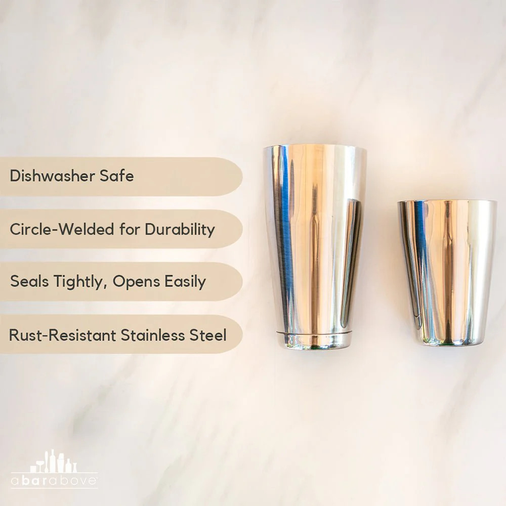 If you’re looking for the ultimate workhorse of a cocktail shaker, this is it. This is the Boston shaker that launched A Bar Above's barware brand in 2016 and has 3,200+ reviews and a 5-star rating on Amazon. It's the perfect combination of a water-tight seal while being easy to open and perfectly weighted. Meet your next - and last - Boston shaker.