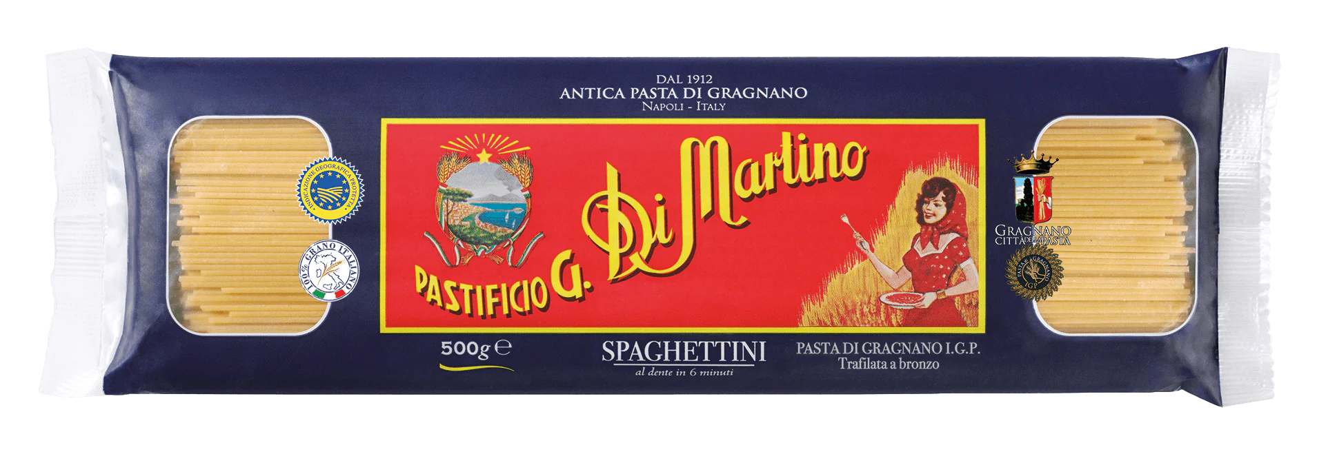 Spaghetti comes from the word "spago" which means thread or twine in Italian. From the pasta mecca of Gragnano comes this cut made with only 100% Italian durum wheat and local spring water. Originally pasta was a popular dish among the impoverished lower classes before industrialization introduced them to mainstream society. Whether you twirl it on a fork or cover it with a nice Bolognese sauce, this bronze extruded, slow dried pasta has been the ideal sauce delivery vehicle for over 1,000 years.